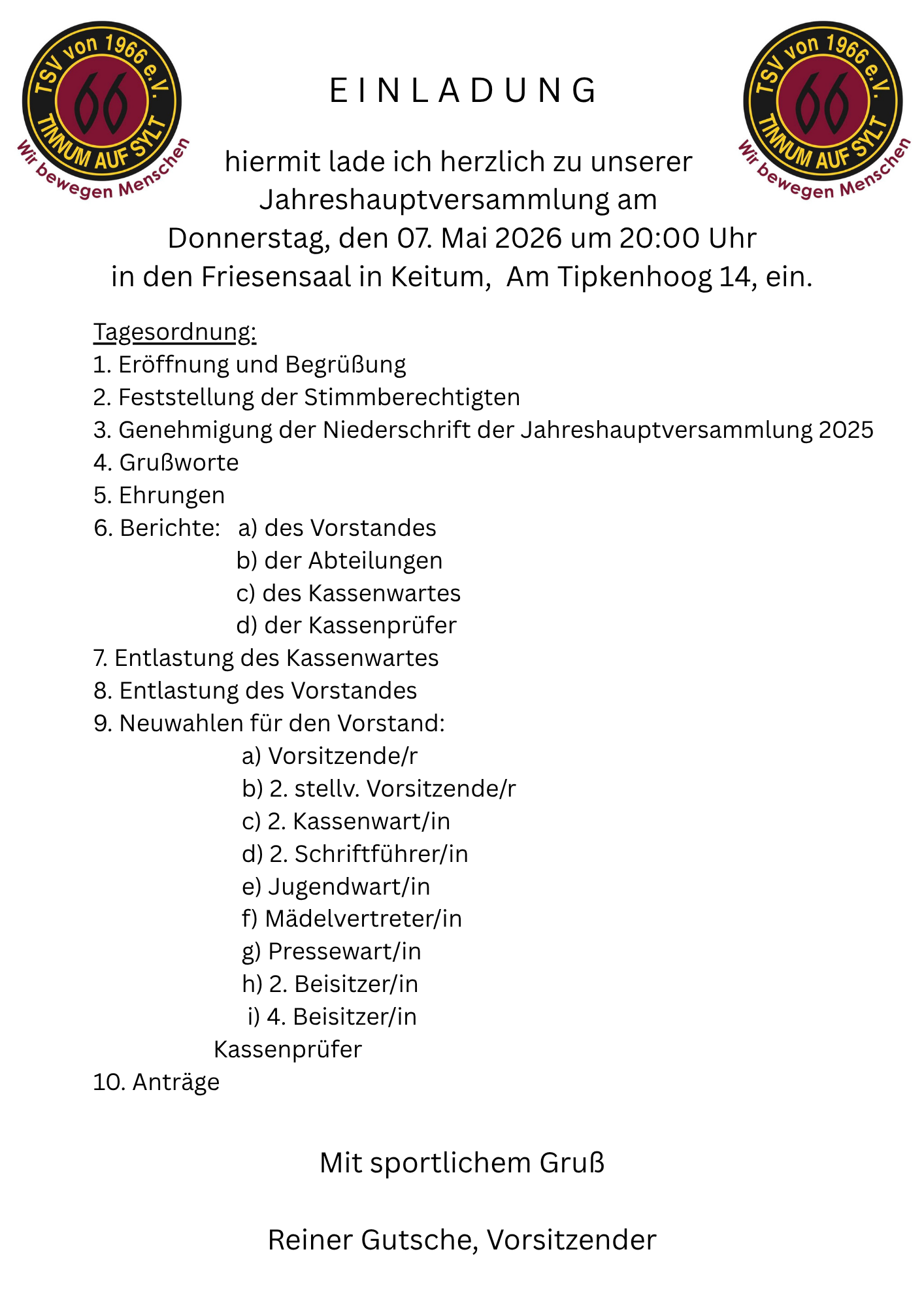 hiermit lade ich herzlich zu unserer Jahreshauptversammlung